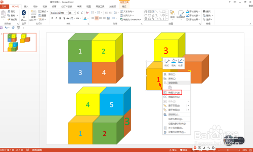 右击正方体——点击:编纂文字——给每个看得见的正方体标上数字或者插入文本框输入数字。