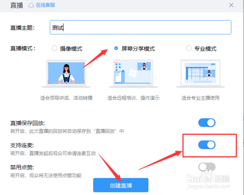 第二:定名群直播开启【撑持连麦】选项进行直播。