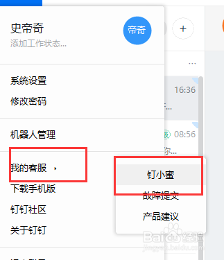 第四:点击【我的头像】联系客服【钉小蜜】选择【人工】。