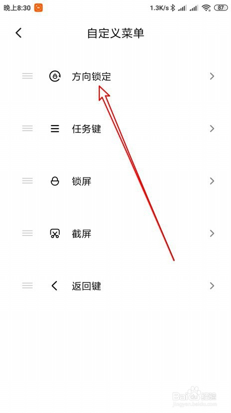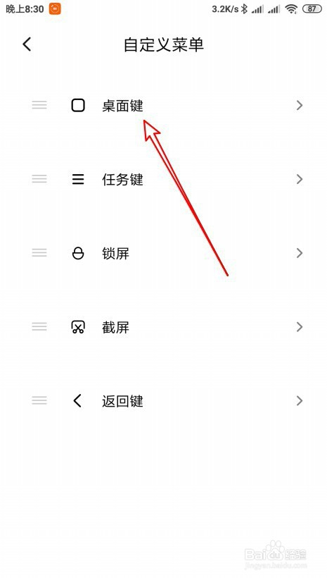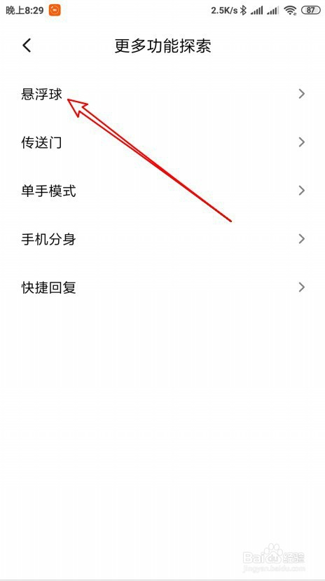 在打开的悬浮球页面,点击自界说菜单的设置项。