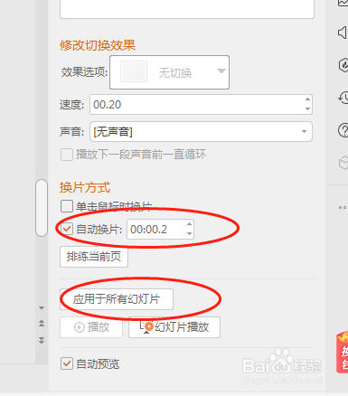【主动换片】:将主动换片时候更改为0.2秒(按照本身要求更改),点击预览一下结果就可以了。