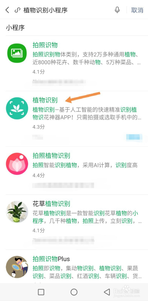 3. 输入“植物识别”,点击“搜刮”