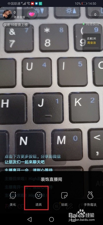 第四步进去装饰直播间界面,点击道具,如下图所示: