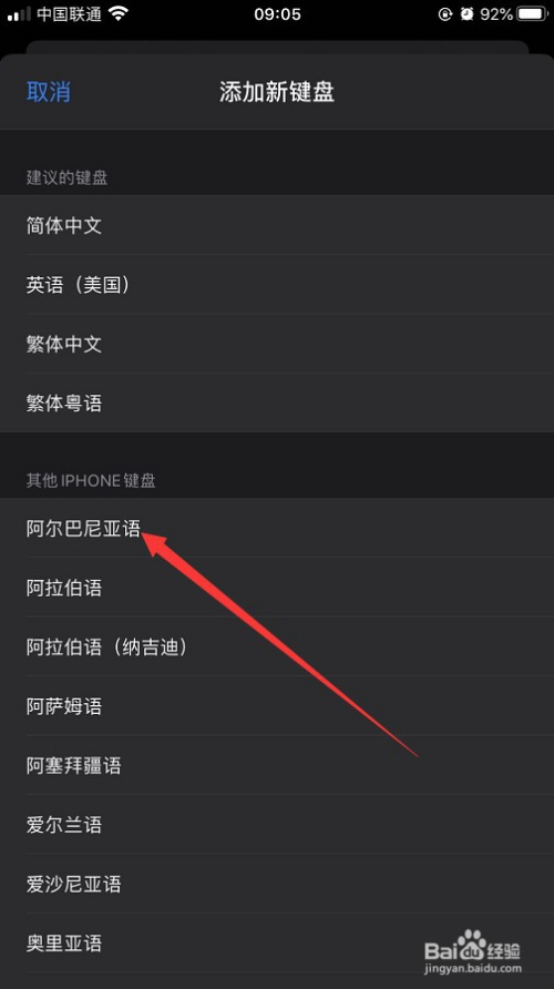 然后在弹出的键盘选项中选择我们需要的键盘,