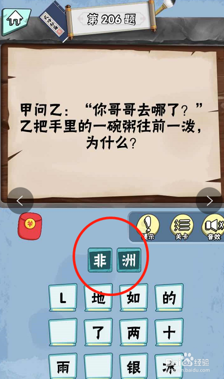 在脑子急转弯达人Lv5诺奖得本家儿第206关内,甲问乙:您哥哥去哪里了,乙把手里的一碗粥往前一泼,提问我们是为什么。准确谜底是“非洲”,把粥往前泼的话,粥也就是飞起来了,所所以非洲。