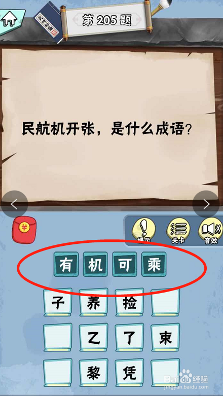 在脑子急转弯达人Lv5诺奖得本家儿第205关内,提问平易近航机开张是什么当作语。准确谜底是“有机可乘”,因为是飞机开张,所以就暗示有飞机可以乘坐了,也就是有机可乘。