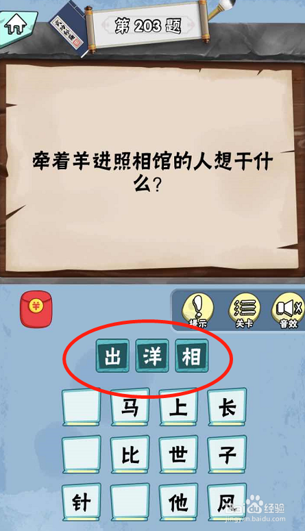 在脑子急转弯达人Lv5诺奖得本家儿第203关内,提问牵着羊进拍照馆的人想干什么。准确谜底是“出洋相”,去照现馆必定是要拍照的,而且牵着羊进拍照馆就会出洋相。
