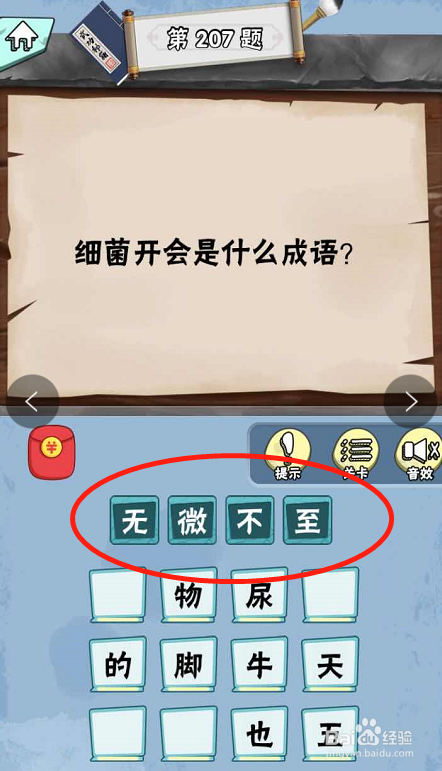 在脑子急转弯达人Lv5诺奖得本家儿第207关内,提问细菌开会是什么当作语。准确谜底是“无微不至”,细菌是微生物,所以细菌开会也就是处处都是微生物,所所以无微不至。
