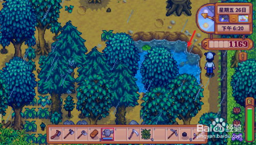 然后发现水壶没水了,在四周的【池子】里打满水,再给种好的辣椒浇水。