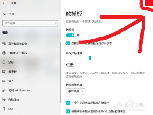 第四步:进入设备后,点击触摸板,再点击触摸板下方的开关就可以了,如下图所示: