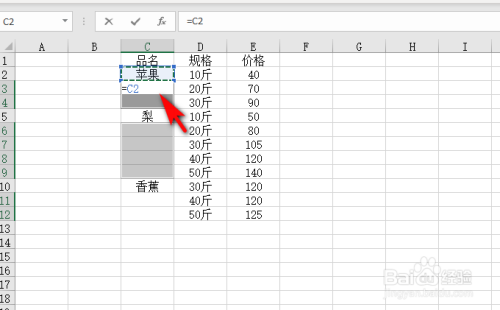 4、需要输入参数,参数位上一行的单位格即C2,输入完当作后,我们按住Ctrl,再按enter即可。