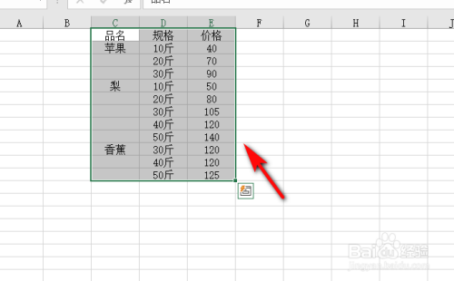 打开Excel文件后,我们首先选中要进行定位节制填充的数据。如图所示。