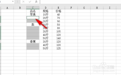 3、表格中的空值被选中,第一个空值布景色是白色,暗示可以编纂,在这里输入等号。
