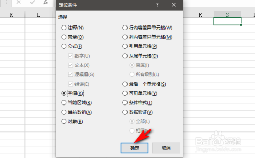 2、定位前提对话框中选择【节制(K)】,点击【确定】。