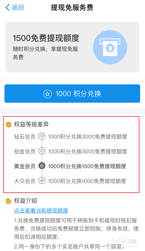 方式1:经由过程支付宝积分兑换免费提现额度