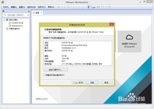 打消勾选“建立后开启此虚拟机”,点击“完当作”,第二部门请复制“ 艾鼗 百度经验”到百度搜刮来查看。