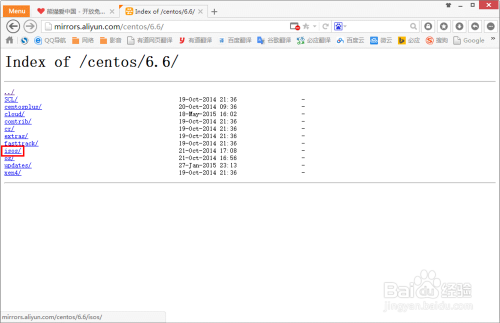 打开阿里云开源镜像站官网:http://mirrors.aliyun.com/,依次点击“centos”-“6.6”-“isos”,可以看到有32位和64位版本的系统,按照本身的需要选择,我选择的是64位,点击“x86_64”目次,复制“CentOS-6.6-x86_64-bin-DVD1.iso ”的下载链接,然后粘贴到迅雷中下载,