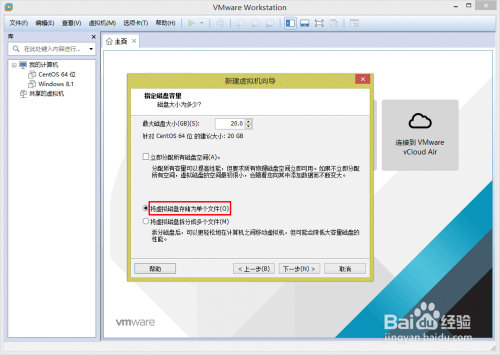 自界说设置最大磁盘大小,勾选“将虚拟磁盘存储为单个文件”,点击“下一步”;默认即可,点击“下一步”,