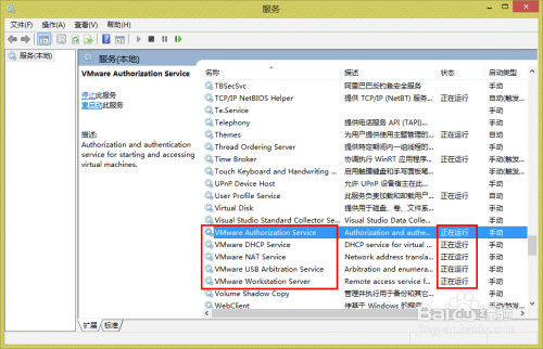打开“办事”,查看VMware的相关办事是否全数启动,没有启动的点击右键选择“启动”,也可以经由过程使命办理器查看启动的办事,