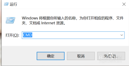 同时按下键盘上的Win+R键,并输入CMD
