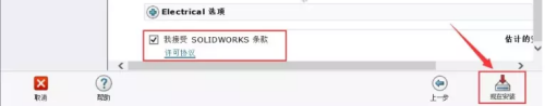 11、勾选【我接管SOLIDWORKS 条条目】然后点击【此刻安装】,然后,再点击【确定】。