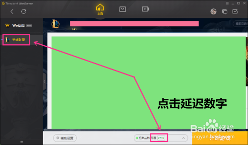 点击我的游戏后,就会在左侧出现你经常玩的游戏,再点击“英雄联盟”,然后在下面点击大区旁边的“延迟数字(27ms)”,如图所示