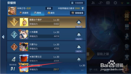 然后我们就可以看到良多种排行榜,这里我们选择荣耀榜