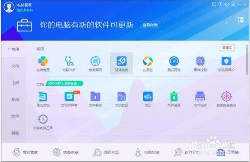 您可以利用腾讯管家进行检测电脑设置装备摆设,选择东西箱,然后选择游戏加快