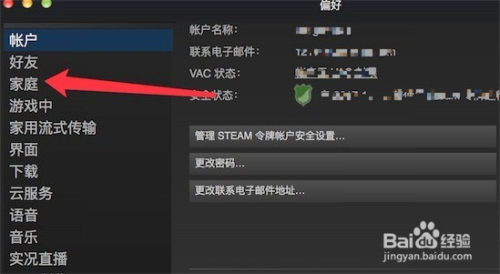 点击后,弹出窗口,点击窗口左边的‘家庭’