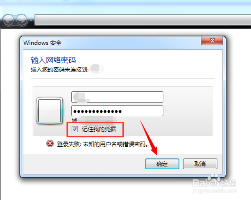 若是是密码输入错误也会一向提醒上面临话框,我们只需要输入准确的密码。然后点击【记住我的根据】