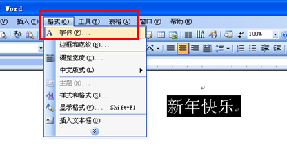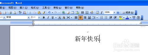 1. 首先打开word2003软件,新建一个word.然后在里面输入“新年欢愉”并设置好字体的样式和大小