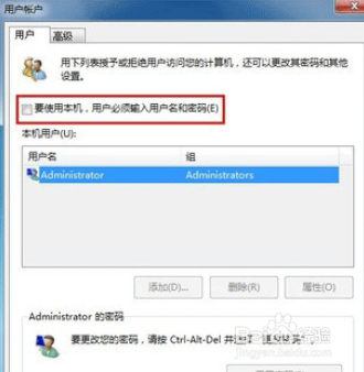 2.打开用户账号办理页面,将“要利用本机,用户必需输入用户名和密码”前面的勾去失落
