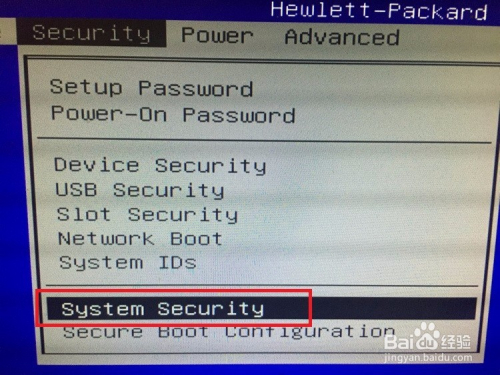 进入到security的界面,然后选择下方的system security系统平安选项。