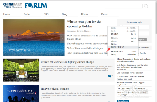 4.右击您要翻译的界面,点击 翻译当作中文。