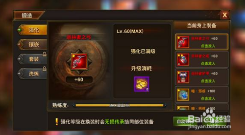 游戏内有一个强化加成属性,身上装备总强化的等级越高,获得的属性加成越给力。