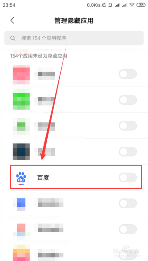 然后选中“办理埋没应用”,即可增减想要埋没的应用。