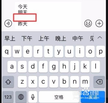 光标置于需要换行的位置,手指点击下“输入框”位置