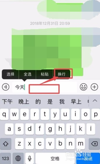当然,您也可以在“备忘录”中,先输入好已完当作换行的文字,再复制到聊天窗口中。备忘录上输入键盘中直接就有“换行”的 选项。