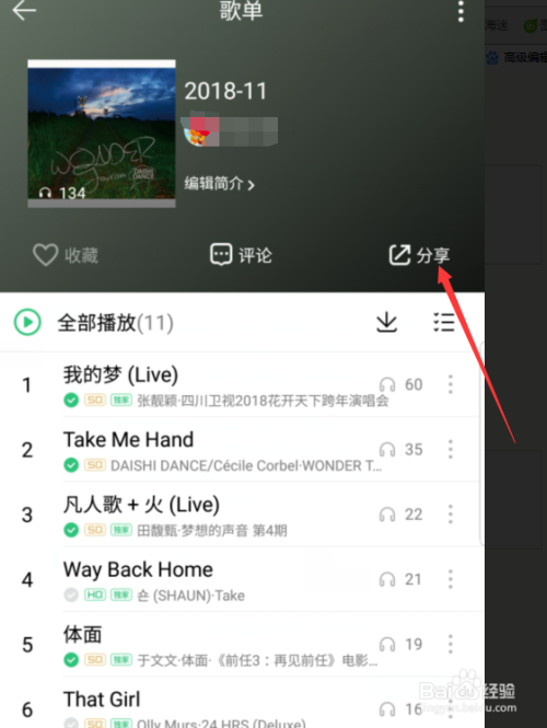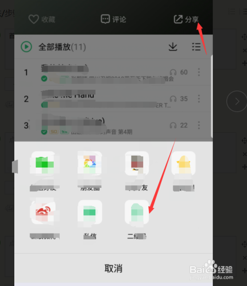点击保藏的歌单右侧的分享会呈现这个小窗口