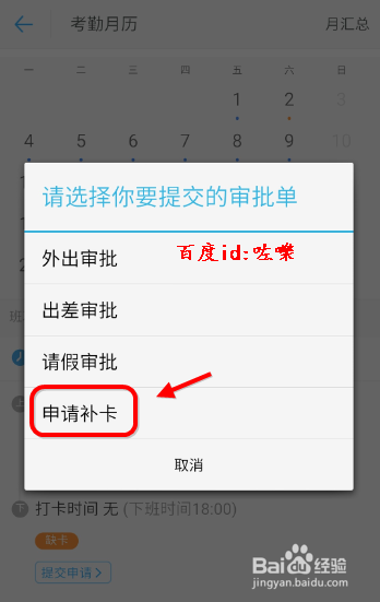 确认没有问题之后,提交补卡申请。然后又您的上级 或者考勤部分审批