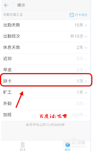 点击打开之后能看到“旷工”,也就是缺卡的记实。点击进去