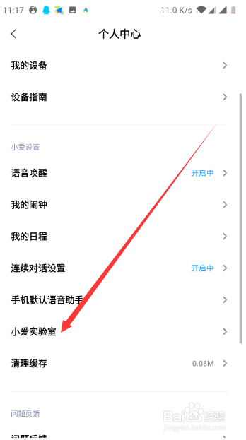 第2步打开小我中间后,在小我中间中找到如图所示的尝试室的功能设置。
