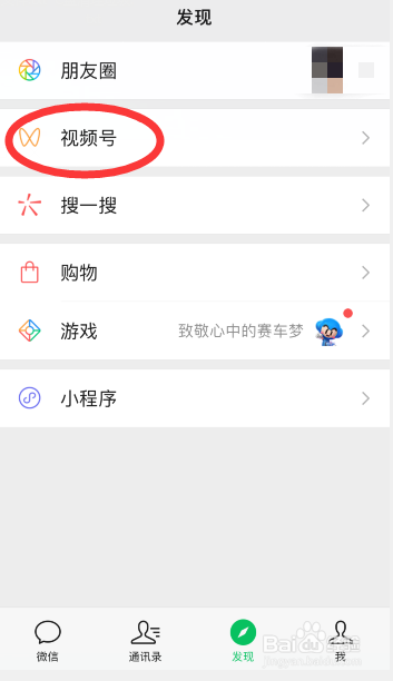 1、手机上,打开微信,点击底部“发现”,发现中,有“视频号”进口