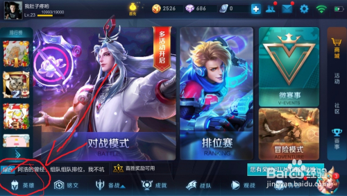 进入到首页后,在右下角有个英雄的按钮,点击进入