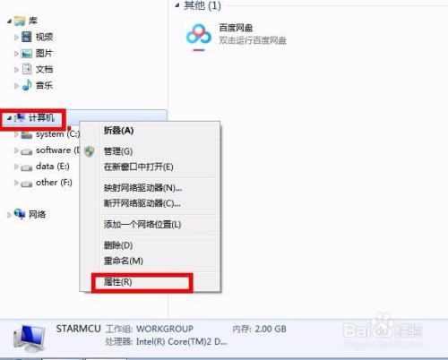 电脑打开,找到计较机,光标放在计较机上,右击。跳出东西栏,细心不雅察,找到最后一个属性的图标。鼠标左键点击它。
