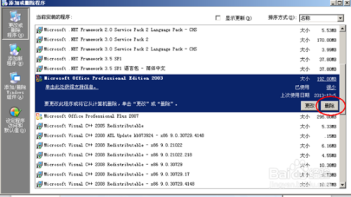 2.找到需要删除的office2003,点击删除。进入删除选项