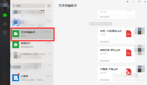 文件传输助手微信传输收到的文件,其实可以点击查看“文件传输助手”可以查看传送记实。