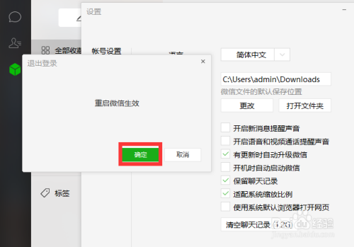 会提醒一个对话框,要求重启微信可以让文件生效。若是经常接收比力大的文件,可以点窜到自界说的路径下便利办理。