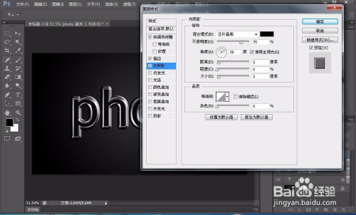 再复制一层文字层,清晰图层样式,添加斜面浮雕,等高线,投影,具体参数如图,设置完之后同样调填充度为0%,这样我们的银色金属字就完当作了,过程比力多,要细心看了。