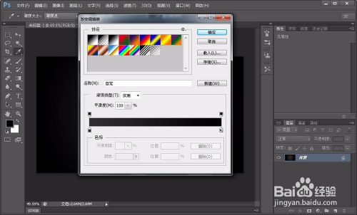 然后我们选择渐变东西,新建一个渐变方案,建好之后选择径标的目的渐变,在图层上滑动,这样就填充好一个渐变布景色,如图所示: